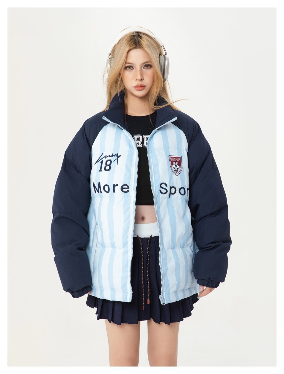 Streetwear Warm Stand Collar Cotton Coat Unisex Loose Cotton Jacket Winter Outerwear